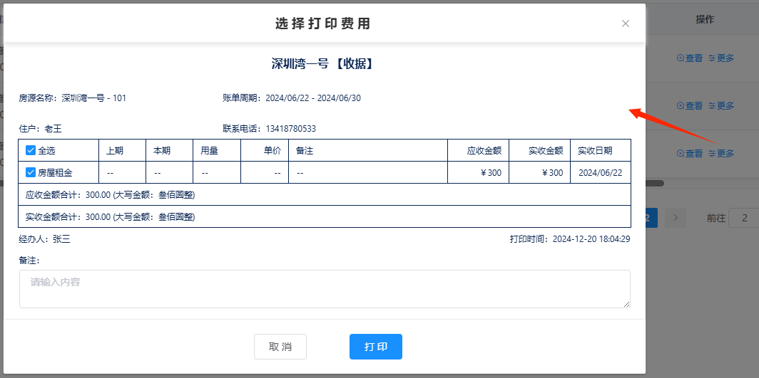账单管理--打印账单