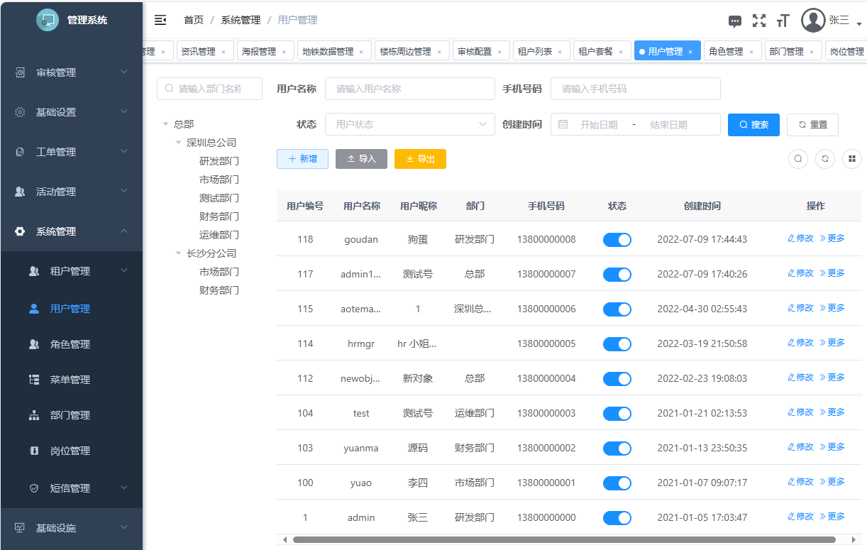 当前租户管理员可以在这里创建用户账号,用户才有权进入后台管理。